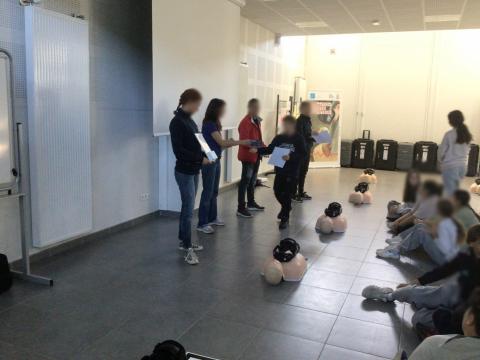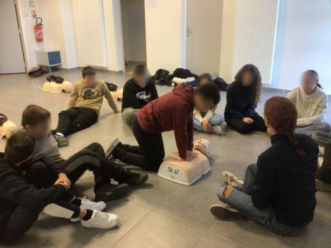 Lundi 6 et mardi 7 octobre, tous les élèves de 4ème (158 élèves) ont été formés aux gestes qui sauvent dans le cadre des actions éducatives proposées par le département.