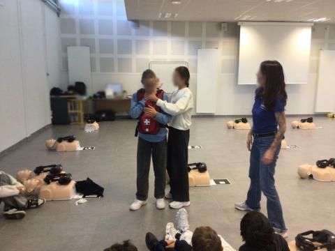 Chaque élève a appris à alerter les secours, se protéger et protéger la victime et l’installer dans une position d’attente adaptée, réaliser les bons gestes en cas d’hémorragie, d’étouffement, pratiquer un massage cardiaque et utiliser un défibrillateur.