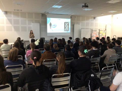A cette occasion, Juliette Lemoine, chercheuse à l’I-STEM (laboratoire du téléthon) est venue échanger avec les élèves, elle leur a expliqué ce qu’est une maladie génétique, les avancées de la recherche (la thérapie génique, la thérapie cellulaire), son métier et les différents métiers de la recherche, le rôle du téléthon…