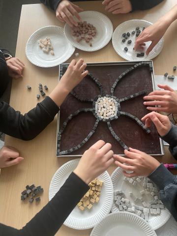 Ils ont pu visiter le musée et le site archéologique, puis ont participé à une enquête sur les traces d'un voleur de l'antiquité, avant de réaliser des mosaïques telles que celles qui ont été retrouvées sur le site de St-Romain-en-Gal.